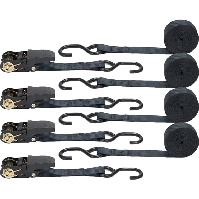 FFOGG ラチェットベルト タイダウンベルト 2m 幅2.5cm 4本セット 荷締めベルト 破断荷重800kg/本 最大使用荷重225kg ラッシンググベルト タイダウン 引越し 運搬用 ナイロン オートバイ対応 ブラック