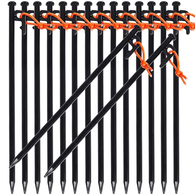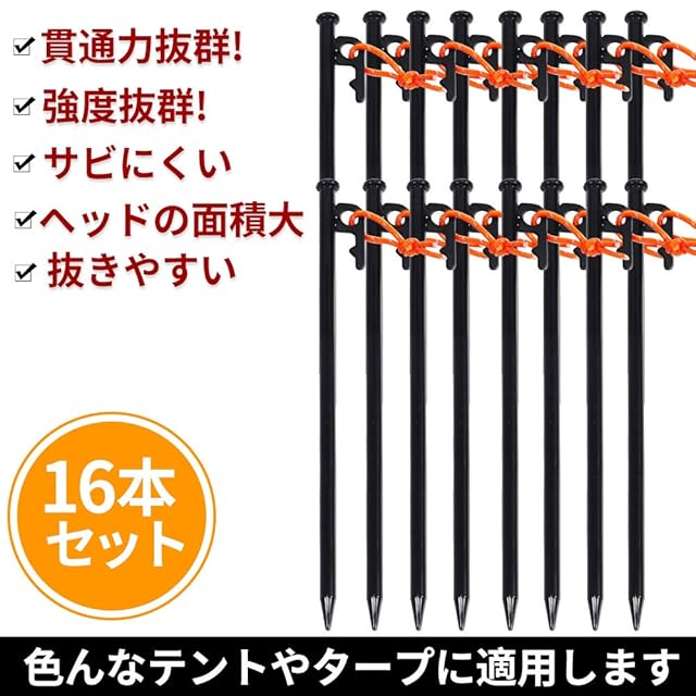 商品名:Soomloom スチール ソリッド テント ペグ テーク 30CM キャンプ設営用具 8本1セット/16本1セット (30cmブラック16本セット収納ケース付き(バージョンアップ))