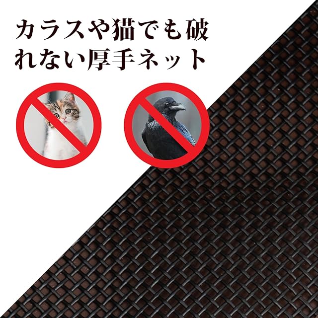 ●カラス対策用におすすめのカラスよけゴミ箱です。 ●屋外長めた蓋とマジックテープ設計で開閉簡単です。底部にネットも付いており、隙間なしでカラスなどの侵入を防止します。 ●カラス、犬、猫による生ゴミの散乱を効果的に防ぐことができます。 ●かラスの視覚では見えにくい黒色カラスよけネットを採用しており、目が細かいのでカラスなどのくちばしが入りにくく、猫の爪がかかりにくいです。 ●折り畳み式で、使わない時はゴミネットのハンドルを回すだけでコンパクトに収納できます。耐水性に優れ、カンタンな汚れなら散水シャワーで洗えます紫外線に強い複合素材を採用し、耐久性・耐候性に優れています。通気性がよく、水や臭いが溜まりにくく、すべての季節に使用することができます。 ●自立式の箱型構造を採用して、ポリバケツや被せるタイプのゴミネットよりも取り扱いやすい構造となっています。しっかりした骨組みや高密度のメッシュで、中には何も入れない状態でも自立でき、崩れや変形しにくいです。ハトメがついているので、台風や強風飛に飛ばされません。汚物がネット箱から溢れ出ないよう注意してください。鋭利なものを差し込むと破損する恐れがありますのでご注意ください。 ●生ゴミはなるべく減らし、カラスの目の届かない場所に置いてください。底部の損傷を防ぐため、内容物をいれたまま引きずらないでください。