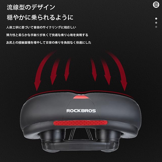 商品名:ROCKBROS(ロックブロス)自転車 サドル 超肉厚 痛くない 低反発 サドルクッション 衝撃吸収 穴開き 通気 ソフト 防水 バック反射テープ クロスバイク マウンテンバイク ママチャリ (レッド)