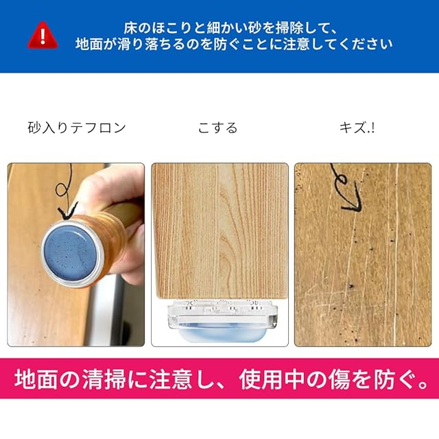 3本針で外れにくく・安定感抜群:この椅子脚カバー3つの釘と超強力な両面テープで二重固定、取り付け後も外れにくく、安定感が抜群です。超強力テープを使用し、両面テープのみで取り付けた場合と比べ、5倍の強度を誇ります。強力に固定されるので、長時間の使用でも安心です。