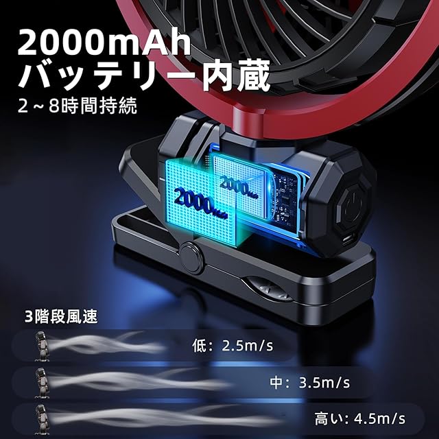 商品名:NIFBANG 車 扇風機 USB充電 2000MAH クリップ/ビス固定 車載扇風機 低騒音 車 角度調節可能 3階段風量調節 強力 5枚羽根 USB車載ファン 車用ファン 取付簡単 省エネ 夏対策 車中泊対策 車内せんぷうき 車せんぷうき 角度調整可能 クリップ用 USBケーブル付き