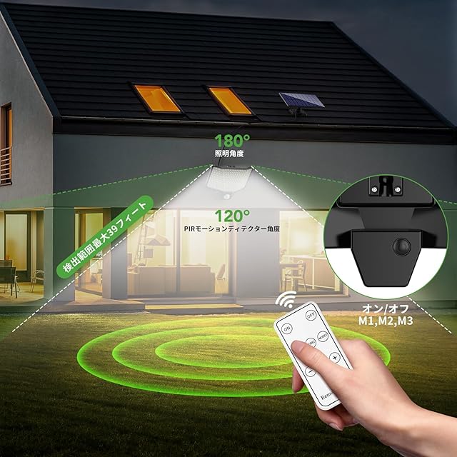 161 LED ソーラーライトセンサーライト屋外 【3つ知能モード】IP65防水 1800mAh 光束最大2000ルーメン 超高輝度 防犯 リモコン付き 壁掛け式 ウォールライト 太陽光発電 電気代不要 人感センサー自動点灯 ガーデン 5Mケーブル /駐車場/玄関/廊下/軒先/庭先