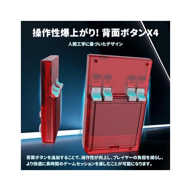 【人間工学デザイン】 ポケットゲーム機は左右アナログスティック+L1/L2・R1/R2の背面ボタンを搭載し、360°全方向の精密な操作が可能。直感的かつ快適なプレイを実現します。特に格闘・アクション・シューティングなど、アーケードスタイルのゲームに最適化されており、操作性と没入感が大幅に向上。長時間のプレイでも持ちやすく疲れにくい設計で、お子さまから大人のゲームファンまで幅広くお楽しみいただけます。