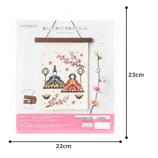 コスモ(Cosmo) 刺しゅうキット 【暮らしが華やぐ季節のたのしみ】 3月春風のひなまつり クロスステッチキット 22.5㎝×18㎝ No.522303