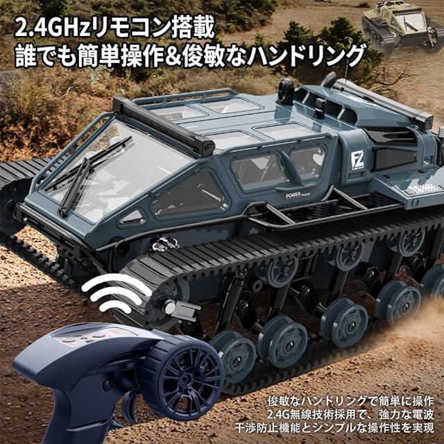 【切り替え可能なライト デュアルドライブトランスミッション】このリモートコントロール履帯ドリフトカーは、屋根にLEDライトを搭載し、リモコンで色やエフェクトを切替可能。高輝度前照灯で夜間走行もスムーズです。ガイドホイールは合金素材にアップグレードし、耐久性が向上。デュアルドライブギアボックスで、弧を描くターンやドリフト走行もスムーズに操作できます。オフロードやドリフト走行に最適で、耐久性のある履帯で様々な地形を走行可能。精密なリモコン操作で思い通りに操縦できます。