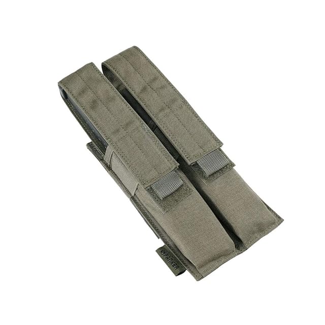 EXCELLENT ELITE SPANKER マガジンポーチ ナイロン製 戦術弾倉袋 タクティカルギア ミリタリーマガジンポーチ 二重固定 三連弾倉ポーチ MP7 KRISS系収納可能 アウトドア サバゲー サバイバルゲーム (二連ミリタリー緑「RGN」)