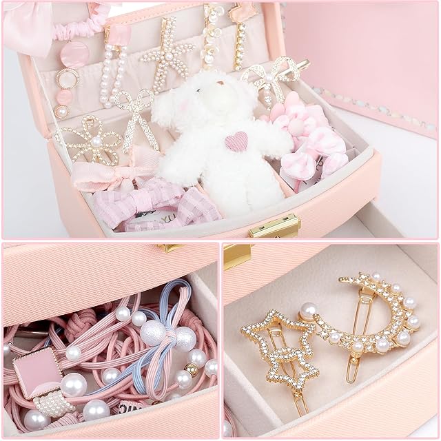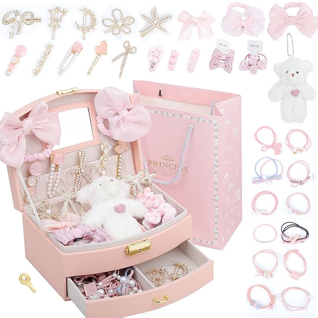 Sitengle ヘアアクセサリーセット かわいい 収納ボックス付き 女の子プレゼント 大容量 プリンセス アクセサリーセット ヘアクリップ ヘアゴム 入園式 入学式 卒業式 子供の日 七五三 誕生日 クリスマス 女の子ギフト お姫様 小学生 プレゼント (ピンクセットA)