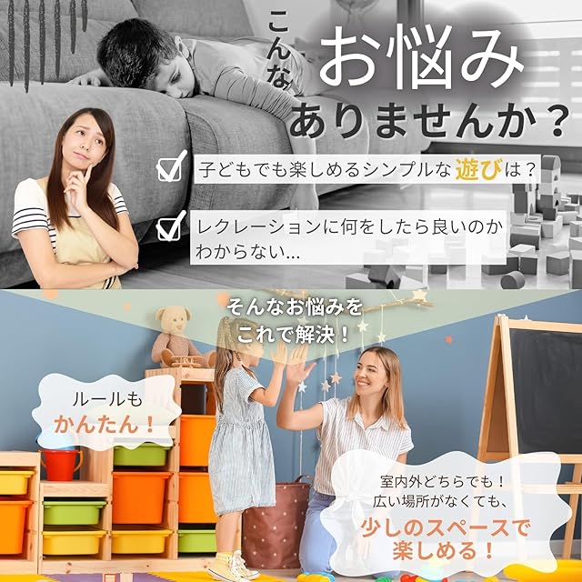 ✅✅✅室内や外でも遊べる 広い公園や庭だけでなく、リビングや施設内などの室内遊びもできる万能セット!天候に左右されず、いつでもどこでも楽しめるので、家族の遊びやレクリエーションに最適です。