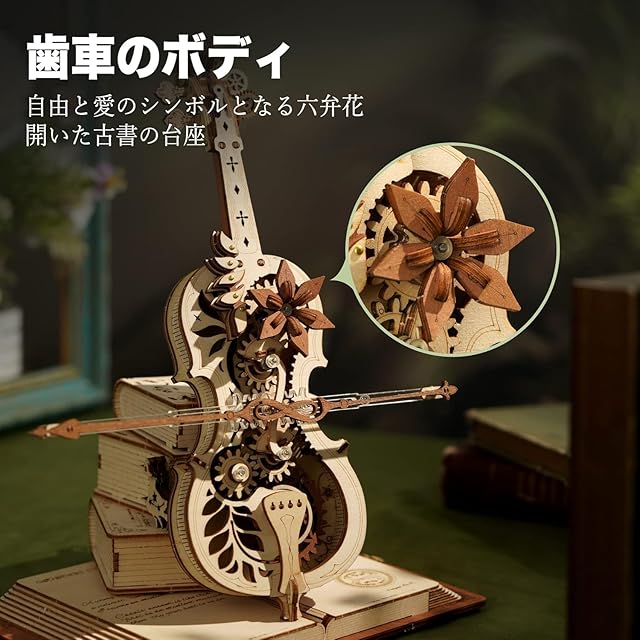 オルゴール付き立体パズル:この ROKR パズルは、チェロを「機械式オルゴール」に組み込んでいます。手つくりの楽しさと音楽を両方満喫できます。
