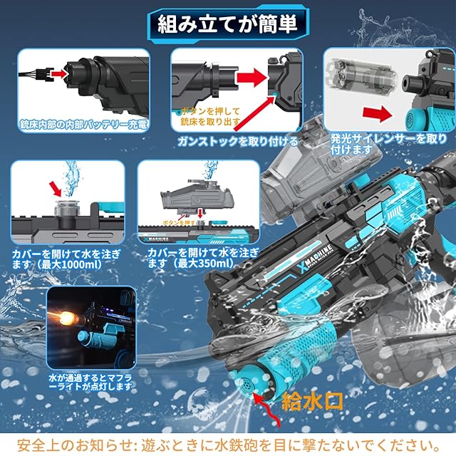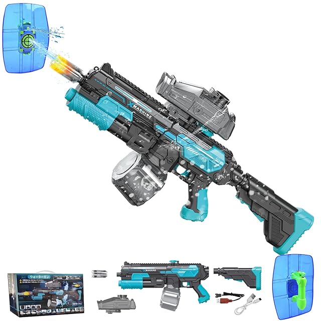Jecimco 水鉄砲 電動 1350ML 大容量 超強力飛距離 男の子 女の子 誕生日のプレゼント 子供 外遊び 電動 連射 ウォーターガン