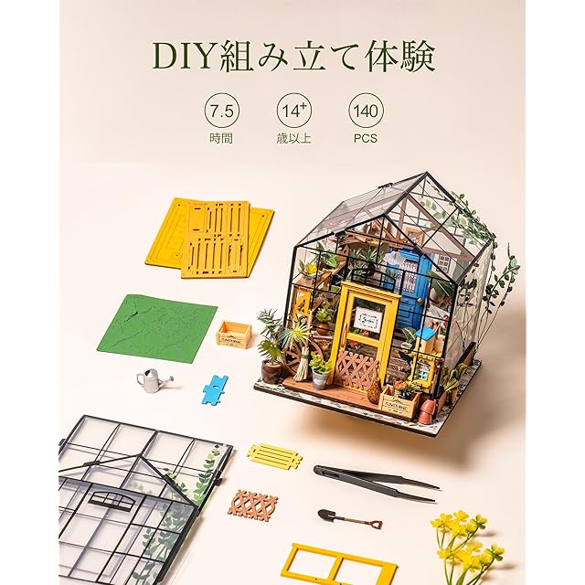 多様な楽しみ方:個々の部品とオープンエリアの組み合わせにより、360°どの角度からでも庭を眺めることができます。自由に開閉できる黄色い木製ドア、くり抜かれたプランター、丁寧に配置された道具小屋、居心地の良い油絵、何もしなくても完成する草花など、数多くのミニチュア・ディテール。