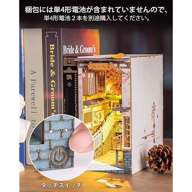 商品名:ROBOTIME ブックヌック キット 立体パズルで作る「桜の電車」- 桜咲く駅の世界を再現!LED内蔵 3Dウッドパズル ブックヌックシリーズ 本立て ブックエンド機能付き 大人も子供も楽しめる木製ミニチュア キット 和風 インテリア雑貨 手作り DIY クラフト 誕生日 記念日プレゼントに最適
