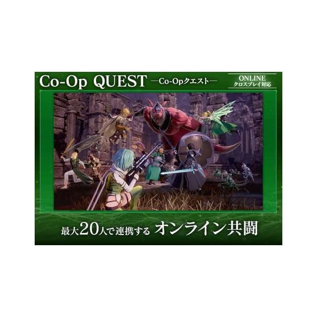様々な役割を持ったSAOシリーズのキャラクターが記憶を超えて参戦。世界中のプレイヤー たちと、最大20人でチームを組み、待ち受ける強大な敵に立ち向かうオンライン共闘アクション。