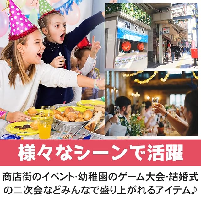 一面だけ中が見えるユニークな抽選箱です。ゲームに参加する人だけでなく、主催者やくじを引かない人もワクワクできるアイテム。シンプルな抽選箱に飽きた方にお勧めです。