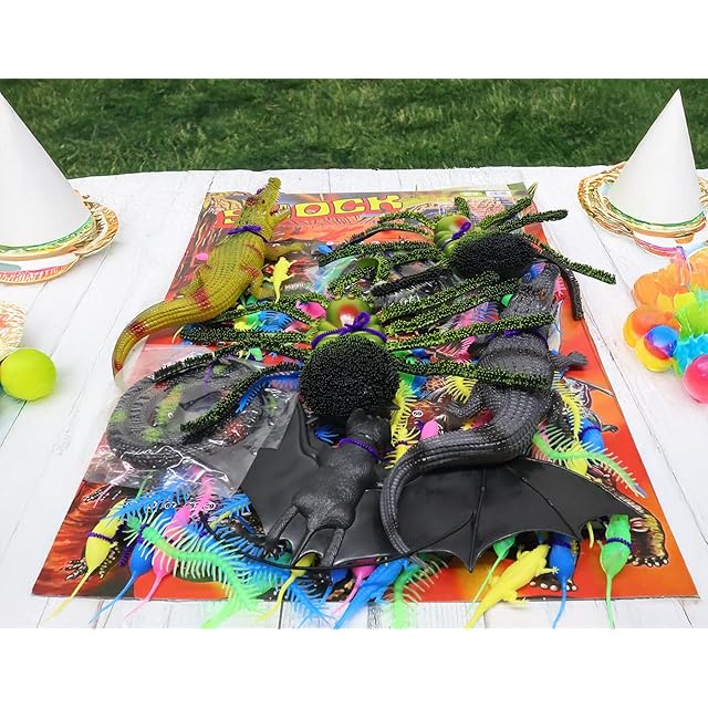 龍屋 くじ引きセット ゴムでできたビックリ系おもちゃ 【ワニ・ヘビ・クモ・コウモリ】【80人用80個】はずれ無し 子供が喜ぶ 〔 お祭り・イベント・子供会・/露店・縁日 〕80枚くじ付き