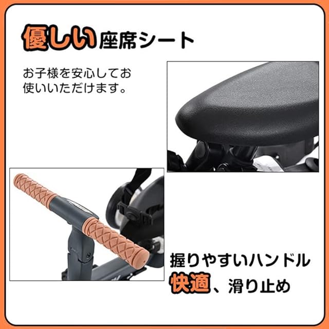 【安全性が高い!】①こどもがハンドルを急旋回させ、曲がりすぎることを防ぐため回転角度を制限し、より安全性を高めました。②赤ちゃんの安全をより効果的な保護できます。 お子様の体型に合わせて、高さ25cm調整できるサドルとハンドルは4段階を調整できます。③三輪車の後部に付いているコントロールバーには進む方向を操作できる舵切り機能付き!