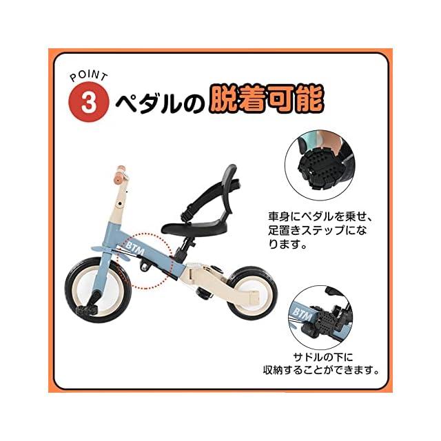 【5IN1多機能一台五役!】お子さんの成長に合わせてパーツを変更することで、手押し三輪車モード・ペダルのない足けりモード・通常の三輪車モード・自転車モード・二輪のバイクモードの5つのモードで遊べます。工具なしで組み合わせできです。お子様の成長に合わせて5階段でご使用いただけます。