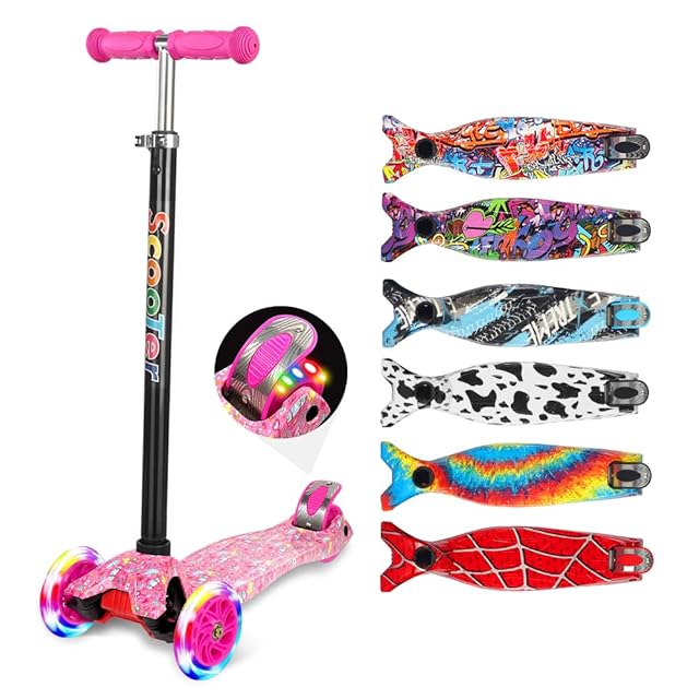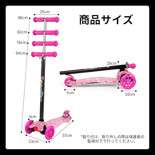 LittleSo キックスクーター 三輪車 キックボード 子供用 4段階高さ調整 光るホイール LEDタイヤ 持ち運び便利 耐荷重50kg ブレーキ 男の子 女の子 誕生日 プレゼント (ピンク)