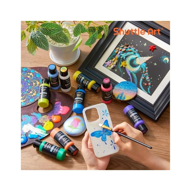 【様々な用途】優れた速乾性と頼もしい接着力で、様々な素材と相性が良いです。キャンバス、プラスチック、陶器、ガラス、石、木材、壁などに描けます。Tシャツ、スニーカー、手作りクラフト、プラモデルなどにDIYもできます。ポーリングアートにも適用です。初心者から専門家まで使いやすい絵具で、お絵かきの好きな方へのプレゼントとしてもおすすめです!