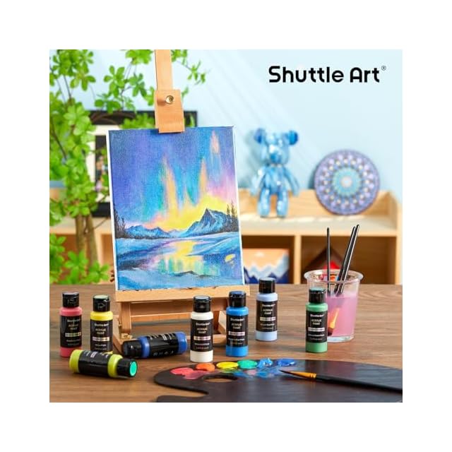 Shuttle Art アクリル絵の具 カメレオン色 16色セット 虹色 パールカラー キラキラ イリデッセンス 速乾 防水 耐久 60ml 大容量 伸びがいい イラスト 塗り絵 クラフト DIY 手作り プラモデル塗装 フルイドアート ポーリングアート トールペイント キャンバス/ガラス/陶器/木材に適用 美術 画材 大人 子供用 初心者 専門家