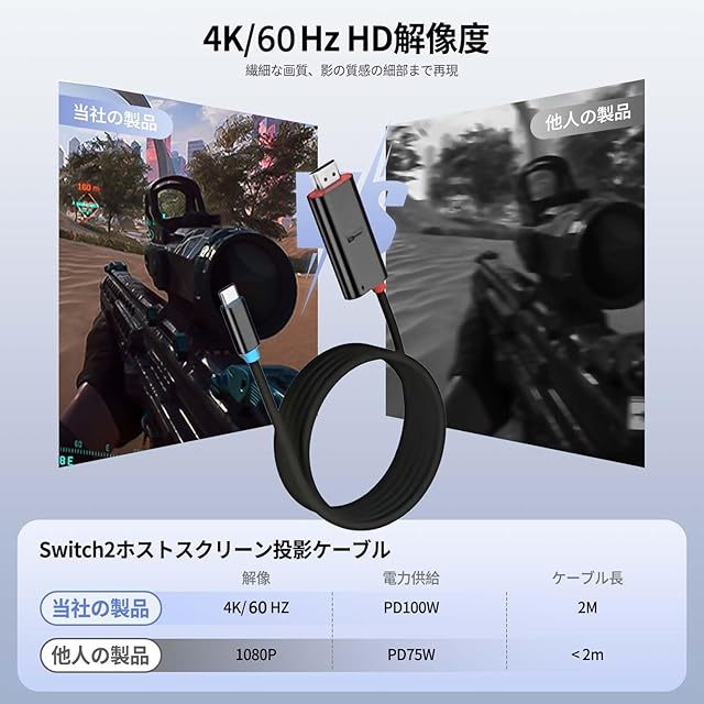 【持ち運びが簡単】プラグアンドプレイ、使用しやすく、ゲーム、映画鑑賞、会議、勤務、授業、展覧会などさまざまな場面で利用でき、子供や友達、恋人へのプレゼントにも良いアイデアです。このSwitch2ミニドックのケーブル長は2Mです。長く太いので、安定して使えます。純正のドックよりコンパクトです。収納も持ち運びもさらに便利になりました。switch2 hdmi ケーブル折りたたむと長さはわずか20cmで、旅行に非常に適しており、持ち運びが簡単です。