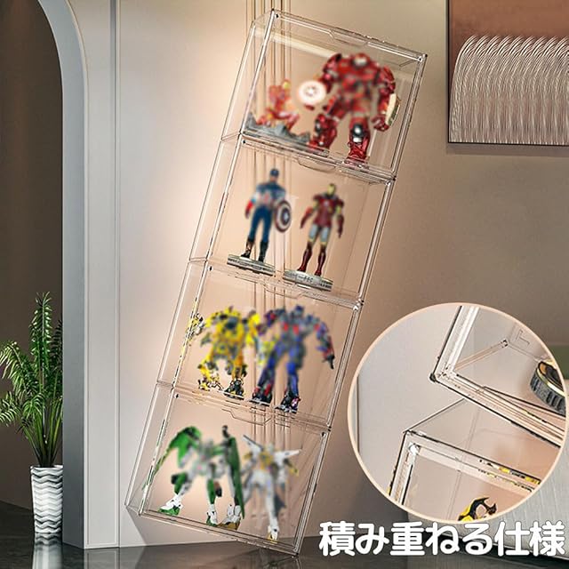 PFLife フィギュアケース コレクションケース ディスプレイラック フィギュア 棚 フィギュアケース 積み重ねる ぬいぐるみ ディスプレイケース プラモデル ケース 大容量 組み立て式 多用途 (透明-幅36cm, 8ボックス)