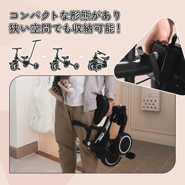 besrey 子供用三輪車 XIN1 三輪車 かじとり ランニングバイク ベビーカー 手押し棒 1歳から5歳まで 折りたたみ 軽量 ハンドル 調整可能 誕生日プレゼント お祝いギフト ブラック