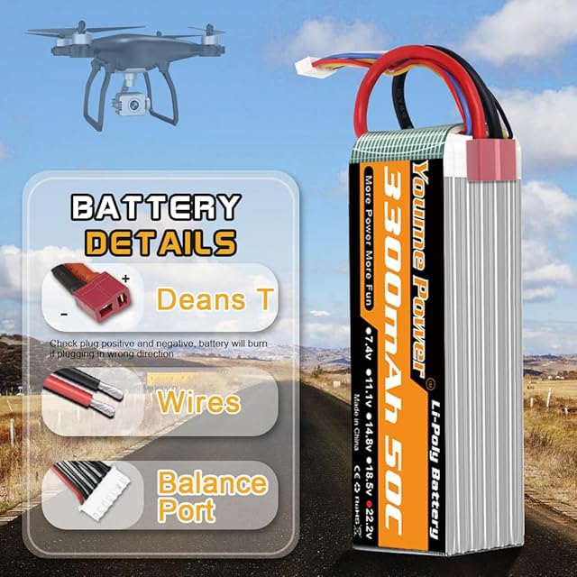 【商品名】Youme リポバッテリー 22.2v 6S 3300mAh 50C Deans T,素早く充電され、長いサイクル寿命(最低150時間)、最高260Wh / kgエネルギー密度