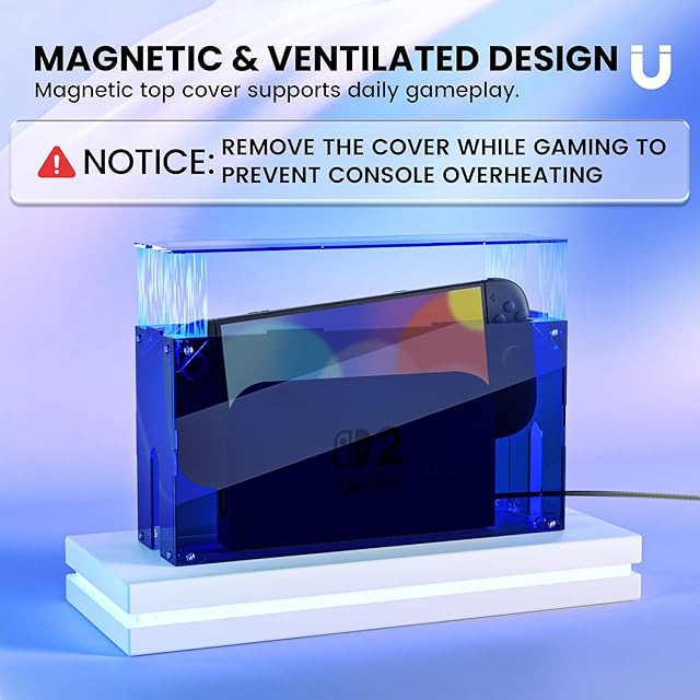 クリスタルクリアのアクリルデザイン:高品質な透明アクリル素材を採用し、高い光透過率でSwitch 2ドック本体のデザインを美しく引き立てます。どんなインテリアにも自然に馴染み、デスク上にスマートに映える防塵カバーです。