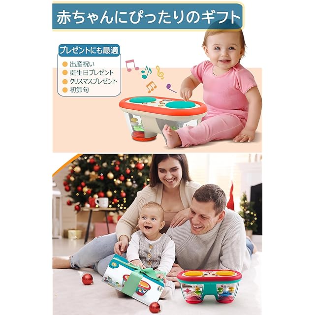 TENGEE おもちゃ 楽器 知育玩具 0歳1歳2歳3歳 ドラム 音楽おもちゃ 人気ランキング 8色回転ライト 10曲メロディ 8種類楽器効果音 女の子 男の子 誕生日プレゼント クリスマス 出産祝い (Aドラム)