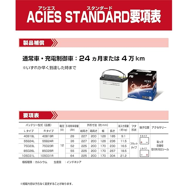FB(古河電池) 国産車用カーバッテリー 55 B24R 充電制御車対応 ACIES アシエス スタンダードモデル