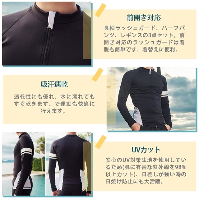[YFMAYI] ラッシュガード メンズ 水着 上下 セット 長袖 レギンス サーフパンツ フィットネス 三点セット