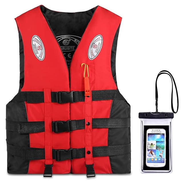 Reedark ライフジャケット 釣り スマホ防水ケース+らいふじゃけっと 呼び子付き 救命胴衣 子供用 大人用 男女兼用 川遊び ボート 海水浴 国交省認定品と同等浮力 4色&6サイズ 赤,XXXL(大人用 80~90kg)