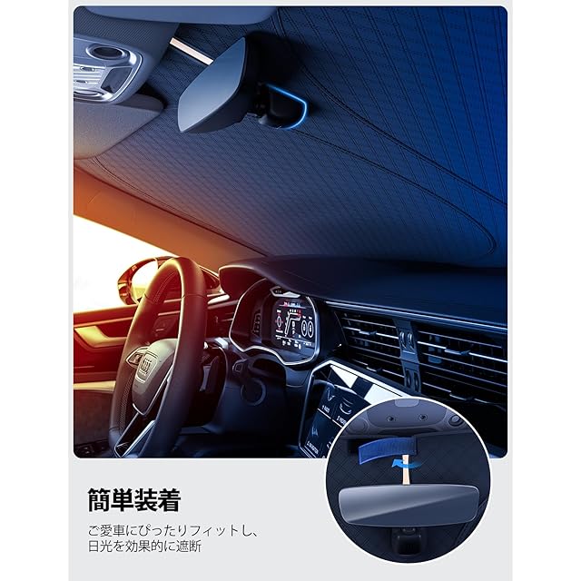 【猛暑対策・内装保護】内装劣化防止、ダメージや経年劣化を防ぎます。駐車時の大事な車を太陽光による損傷やハンドル焼け、ダッシュボードなどの樹脂部分の日焼けからしっかりご愛車を守ります。駐車の度に気持ちをより涼しくしてくれます。