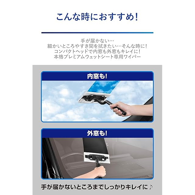 フロントガラス(内窓・外窓)の手の届かないところの掃除に便利なウェットシート専用ワイパー【ワイドヘッドと長いグリップでワイドに拭ける】