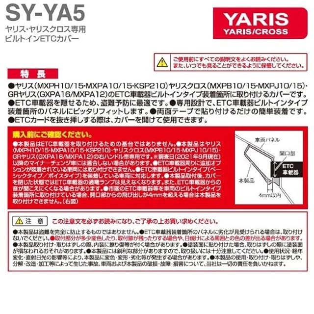 槌屋ヤック(Tsuchiya Yac) 車種専用品 トヨタ ヤリス ヤリスクロス 専用 ビルトイン ETCカバー ブラック 180×100×50mm SY-YA5