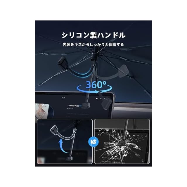 【シリコン製ハンドル】従来の金属製ハンドル は車体に傷がつく恐れがありましたが、このライズ サンシェードは柔らかなシリコン製ハンドルを採用することで、ダッシュボードやセンターコンソールへのダメージを防ぎ、頻繁な開閉による摩耗から車内をしっかり守ります。