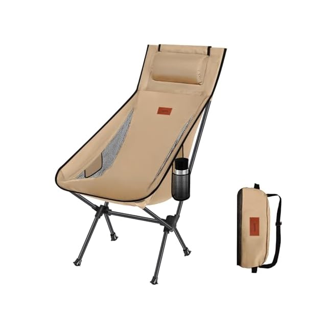 DesertFox アウトドアチェア 折りたたみ 枕付き 超軽量 【独自開発のカップホルダー】 【耐荷重150kg】 キャンプ椅子 コンパクト イス ハイバック 椅子 収納袋付属 お釣り 登山 携帯便利 0088 (カーキ,Large)