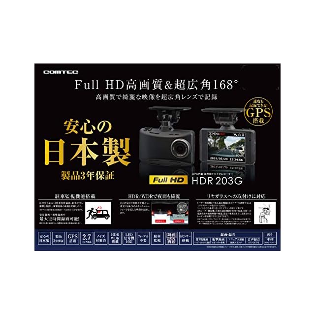 ドライブレコーダー国内最大手メーカーのコムテック社から、Full HD&168°の広角レンズを採用したスタンダードモデル「HDR204G」が登場。