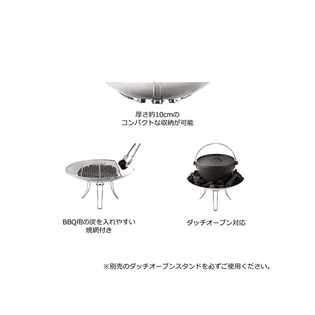 【おすすめ】地面への熱の影響を軽減するため、「ファイヤープレイスシート(別売り)」と一緒にご使用ください。ダッチオーブン使用時は「ダッチオーブンスタンド(別売り)」を必ずお使いください。