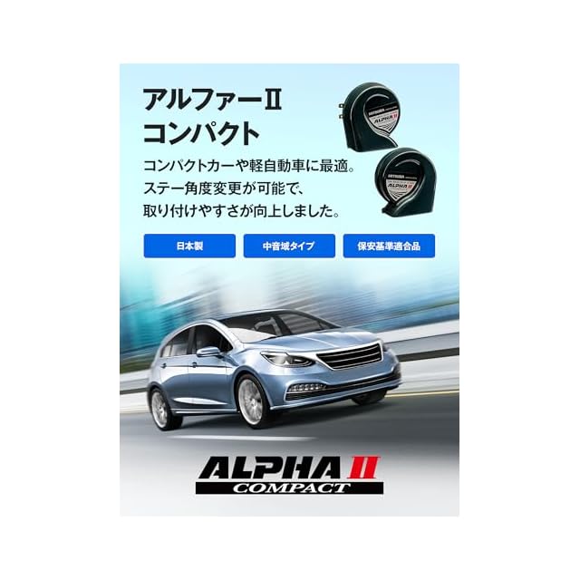 MITSUBA(ミツバサンコーワ) アルファー II コンパクト ホーン クラクション 車 バイク 中音域 小型軽量 保安基準適合品 日本製 HOS-04G