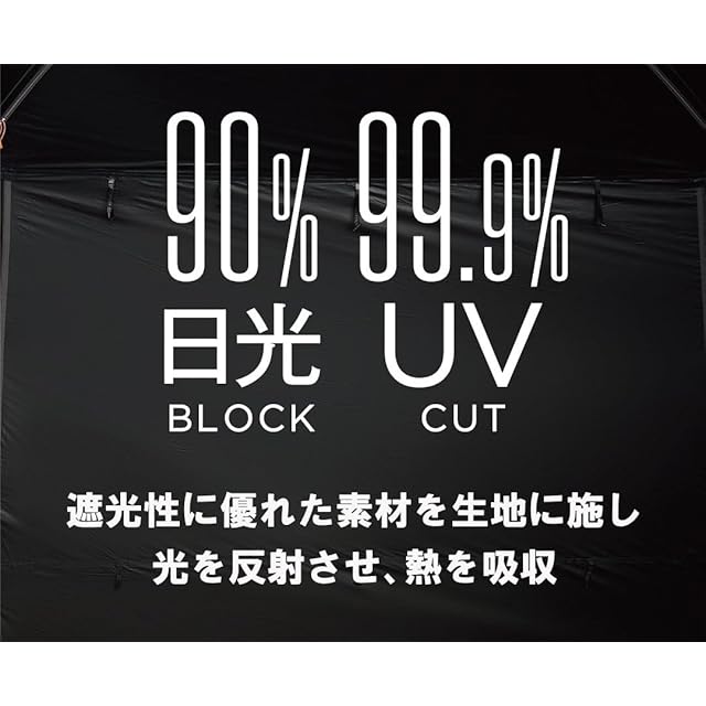 【ダークルームテクノロジー】日差しが強い日や気温が高い日は、熱中症のリスクが高まります。コールマンのダークルームテクノロジーは、日光を90%以上遮断して、シェード内の温度上昇を抑制します。木陰がない公園やプール、海水浴などでは、非常にお勧めの機能です。