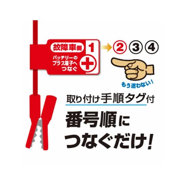 BAL(大橋産業) ブースターケーブル DC12V DC24V 200A 5m 軽自動車 普通乗用車 SUV 2t 4t 大型トラック 農業 建設機械 絶縁フルカバークリップ 取り付け手順タグ 品番:1685