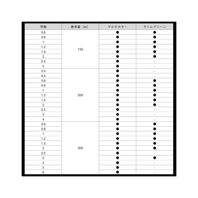 color:5カラー pattern:200m style:0.5号(9lb.):