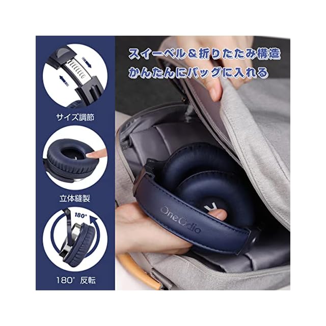 OneOdio Pro10 ヘッドホン有線 50mm ドライバー 3.5mm/6.35mm両対応 ハイレゾヘッドフォン 折りたたみ式 モニター/DJ/ゲーム/DTM/楽器練習 着脱式 ケーブル2本付き