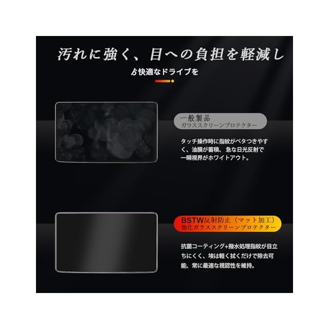 【防眩・反射防止|運転ストレスゼロ設計】独自開発のマット加工表面が強烈な太陽光や車内照明の反射を98%以上カット。直射日光下での運転時でも画面が見やすい「目に優しい設計」を実現。助手席の方とのナビ共有時も、角度によるグレア現象を軽減します。※ご注意:ガラス素材を使用しているため、破損のリスクがございます。万が一輸送中に破損していた場合や、作業中の不手際で損傷が生じた際は、無料にて1回限りの再送付が可能です。ただし必ず到着後3営業日以内に状態確認のご連絡をお願い致します。何らか問題がございましたらメールにてご連絡ください--商品詳細ページにて[販売元]をクリックすると、ショップのホームページへ移動します。