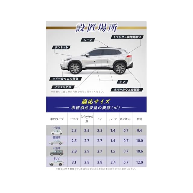 【 整備士歴9年時安一希さん監修 】整備士歴9年時安一希さん監修。専門家監修による信頼設計。商品の5つのおすすめポイント1.厚みがあり、しっかり断熱材効果がある。ポイント2.夏冬の冷暖房効果を高めてくれるポイント3.難燃性試験をクリアしており、安心感がある。ポイント4.サイズが大きく、1つでも多くの箇所を施工できる。ポイント5.防音効果もある
