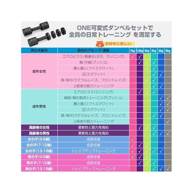 ✅【プロ品質と多機能トレーニング】このWolfyok fitness可変ダンベルセットは、複数の固定重量製品セットの代わりに使用でき、収納スペースを節約します。✅家庭での使用に非常に適しており、さまざまなトレーニング動作をサポートし、家族のさまざまなトレーニングニーズを満たします。また、騒音も少なく、床に置いても床を傷つけにくく、周囲の人に迷惑をかけないので、家庭環境での使用に適しています。コストパフォーマンスが高いです。特に多機能性を追求するお客様に適しています。✅ユーザーのフィードバックに基づいて開発されており、ダンベルセットの重量は 1kg から 5kg の間で自由に調整することができ、自分に合った重量でトレーニングを行うことができ、徐々に負荷を増やし、個別化されたトレーニングニーズを満たすことができます。✅初心者でも簡単にトレーニングを行うことができ、怪我をすることなく、続けやすいです。この多機能ダンベルは耐久性と安全性が非常に高く、初心者に好まれており、ジムや自宅でのトレーニングにも適しています。ピンクは特に可愛い女の子にぴったりです!
