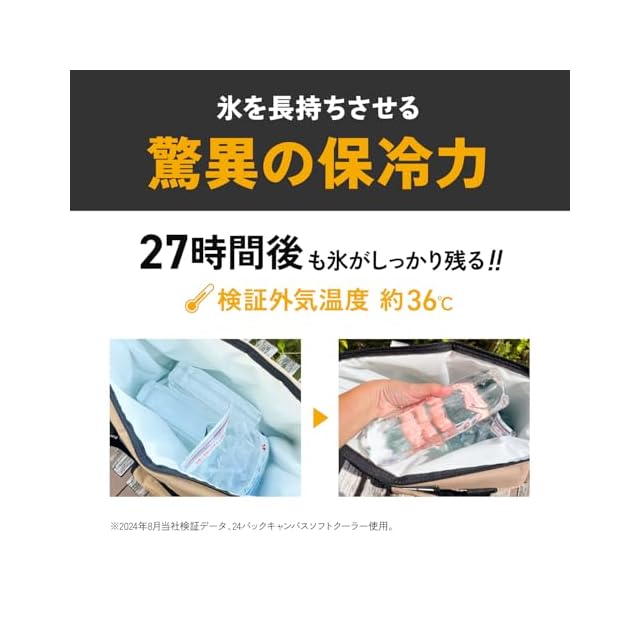 ■素材はウォーターベッドや地面に設置するポールなどにも使われている素材と同じ高品質なビニールライナーを採用。■内部の断熱材は厚み1.9cm、高密度の独立気泡フォームを使用しています。この素材の組み合わせにより、サイズによっては氷なら外気温49℃の中で約24時間維持できる程、驚異の保冷力を発揮します。